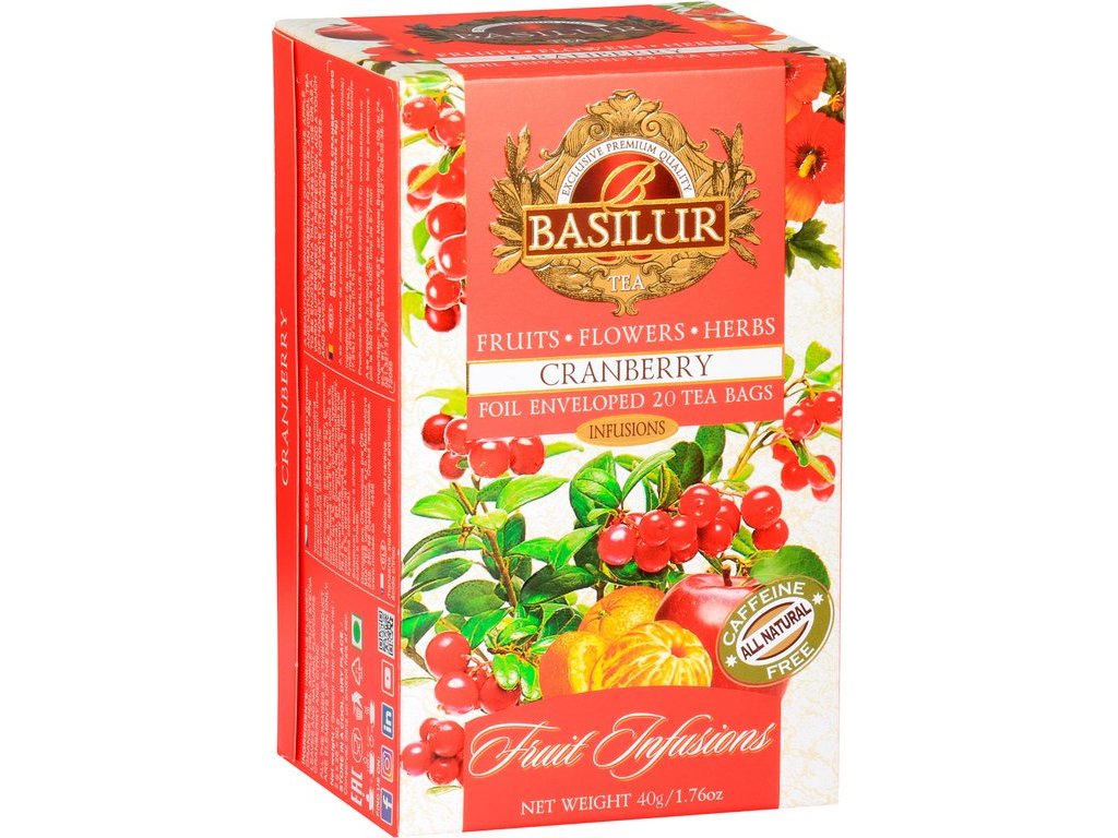 Ovocný čaj Cranberry s ibiškem, pomerančovou kůrou, jablkem, stévií a příchutí brusinek.