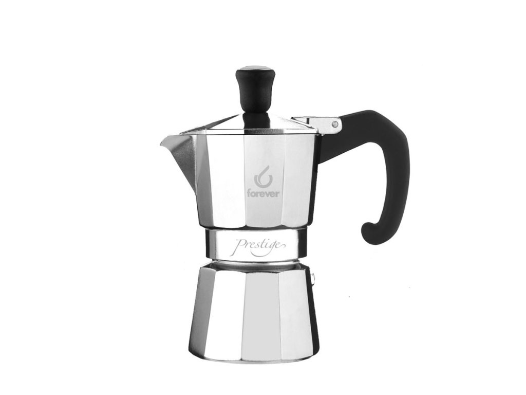 Moka konvička Forever Miss Moka Prestige je ideální pro přípravu tradiční italské kávy v pohodlí domova. Je kompatibilní s plynovými, elektrickými a sklokeramickými varnými deskami; pro indukční desky je určena varianta Miss Moka Prestige Induction.