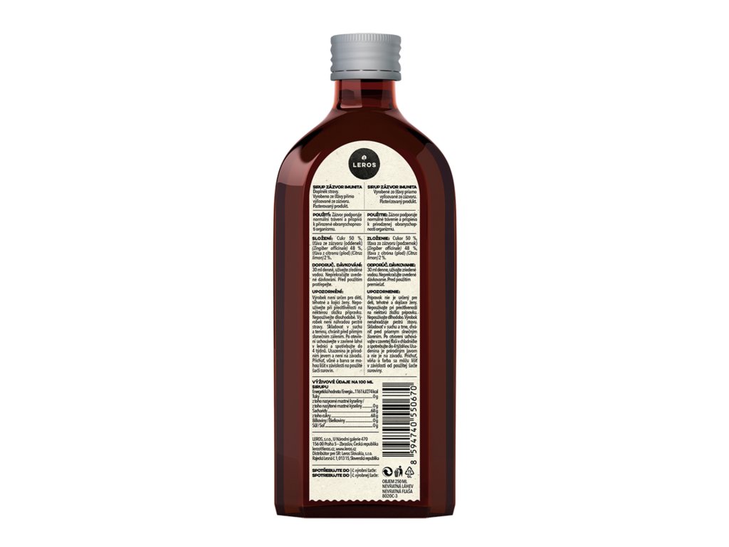 Medicinální sirup s 50% funkční šťávy (směs zázvoru a citronové šťávy vylisované za studena) je velmi vhodná pro posílení přirozené obranyschopnosti organismu a jako zdroj potřebných vitamínů a minerálních látek.(především A, B1, B2, C či E a sodíku, hořčíku, fosforu, draslíku, vápníku nebo železa). Už před 5 tisíci lety Indové a Číňané používali zázvor na veškeré neduhy a přidávali ho také hojně do svých nápojů i pokrmů