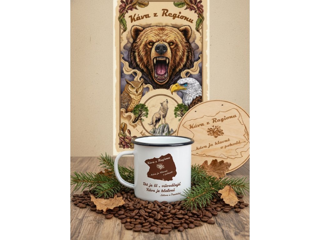 Káva z Regionu Plecháček – originální limitovaná série plechových hrnečků z naší pražírny. Vezmi ho s sebou na hory, do lesa nebo k táboráku a vychutnej si čerstvě praženou kávu kdekoliv. Skvěle se hodí i domů na ranní kávový rituál nebo večerní chill na balkoně.