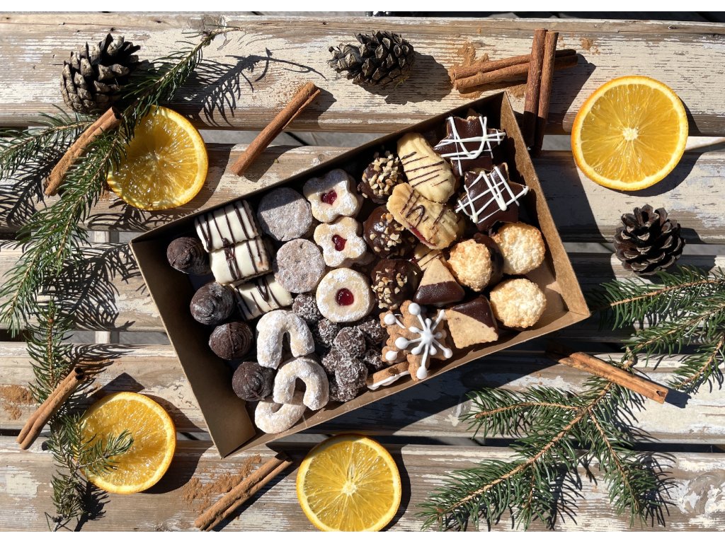 K čemu se hodí? Na Štědrý den ke kávě a čaji, na návštěvy k rodině, do práce na společné ochutnávání nebo jako dárková krabička pro někoho, koho chcete potěšit. Mix je pestrý – milovníci klasiky si vezmou linecké a rohlíčky, mlsouni sáhnou po vosích hnízdech a rumových kuličkách, děti ocení zdobené perníčky.